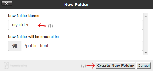 5. In the New Folder Name field, enter your folder name, such as my-folder. Then click on Create New Folder.