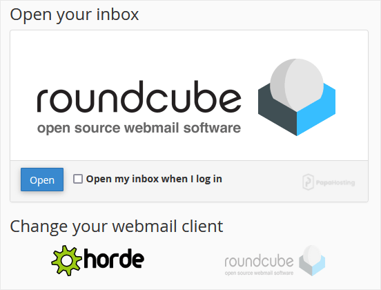 2. From the cPanel's Webmail Page, click on any Webmail email reader such as Roundcube, or any other available application.
